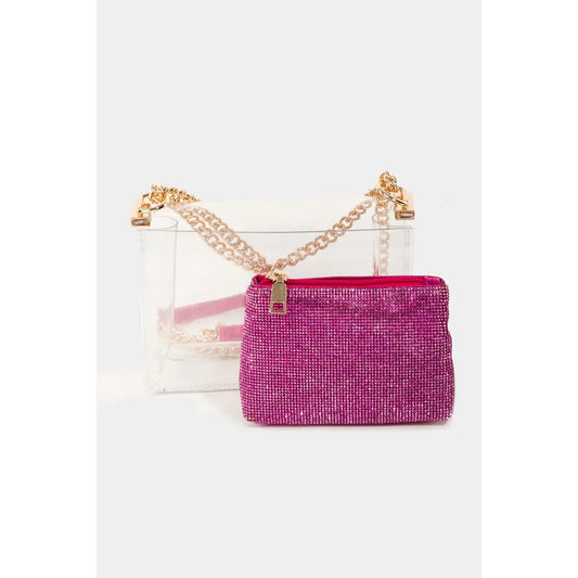 Clear Purse with Fuchsia Clutch Insert (Cross Body)