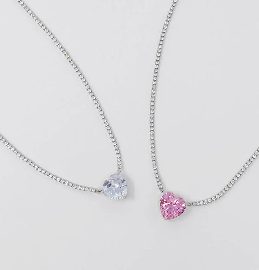 925 Sterling Silver Heart Tennis Necklace