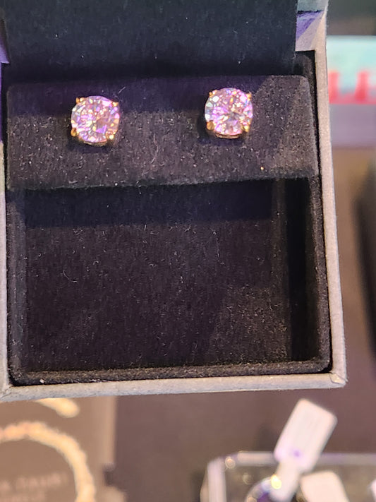 7mm Gold Stainless Steel Stud Earrings With Cubic Zirconia