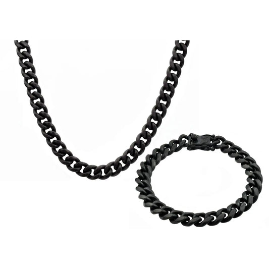 Men's Black Plated Stainless Steel Double Cuban Link Chain Bracelet