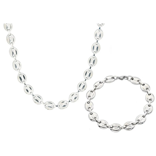 Men's Stainless Steel Puff Mariner Link Chain Bracelet
