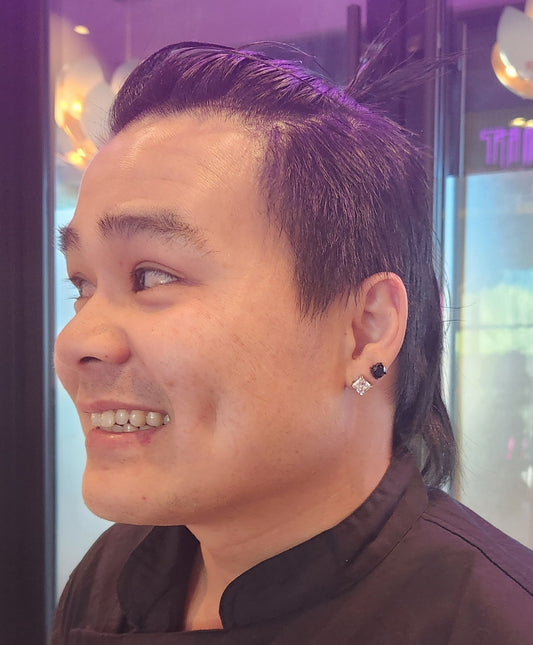 Men's 7mm Silver Stainless Steel Stud Earrings With Cubic Zirconia
