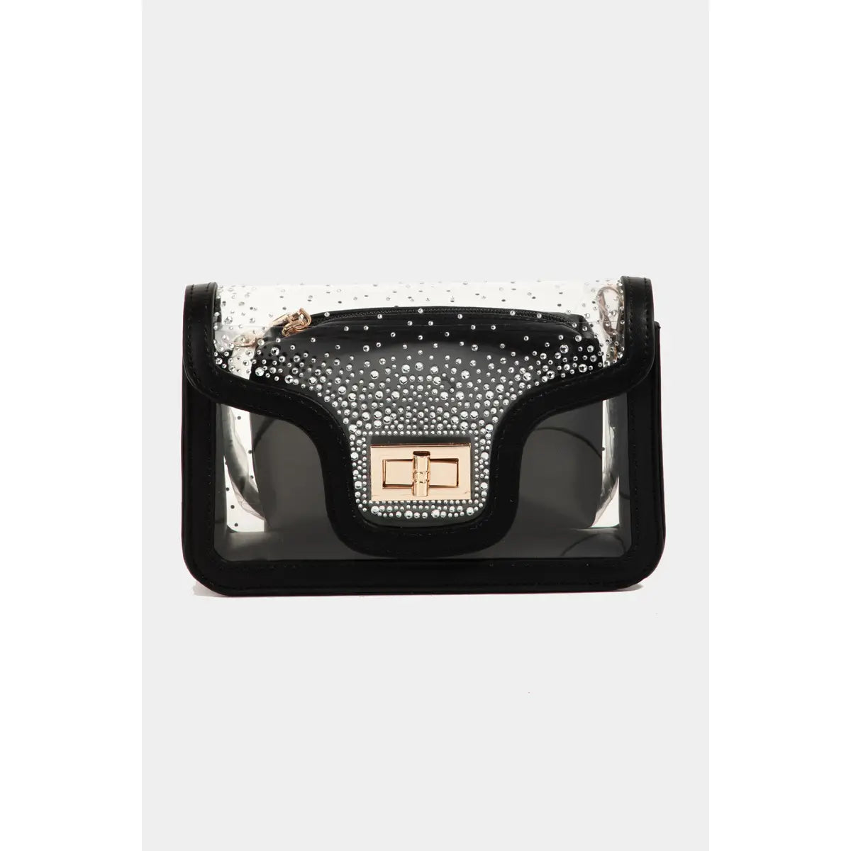 Clear Purse with Sparkly Rhinestones and Black Trim