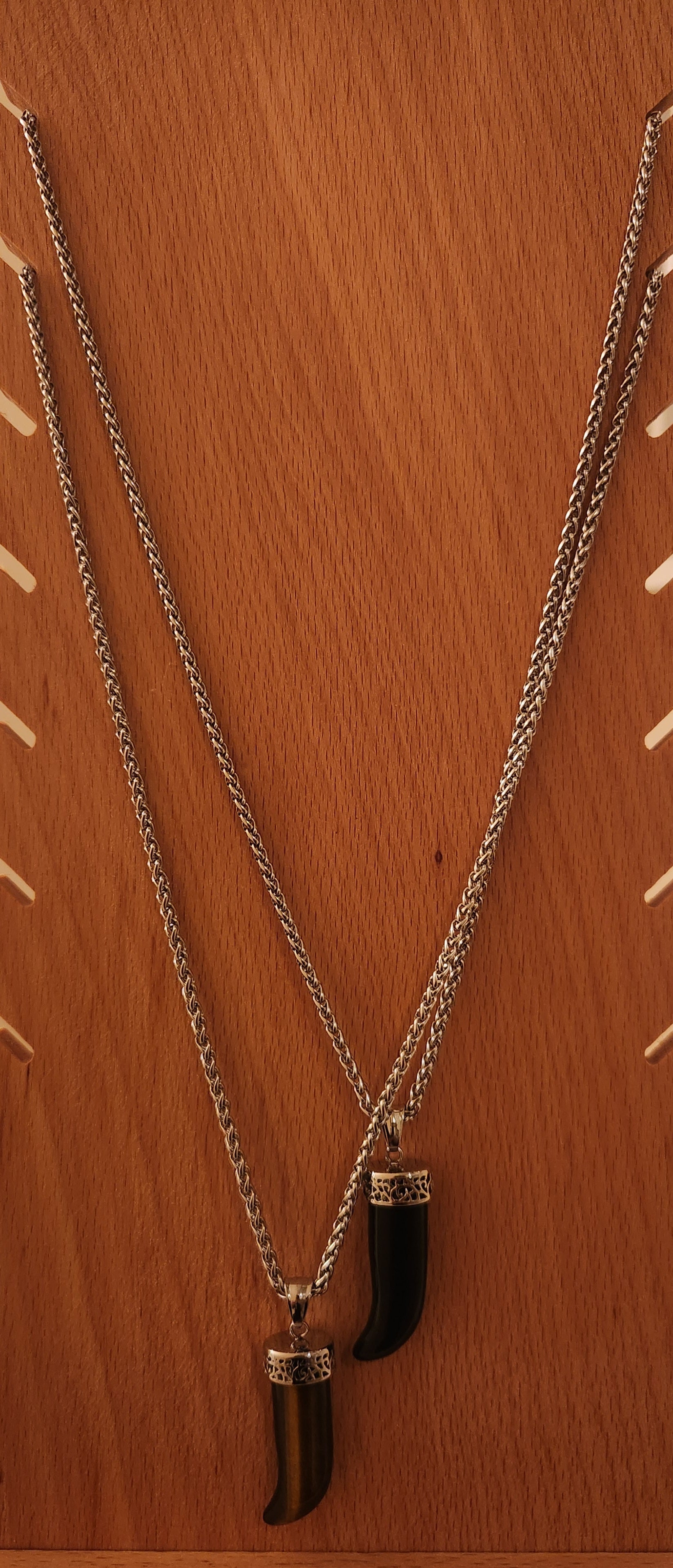 Men's Genuine Tiger Eye Horn Pendant and Chain