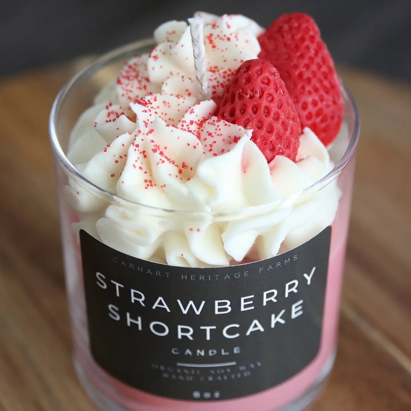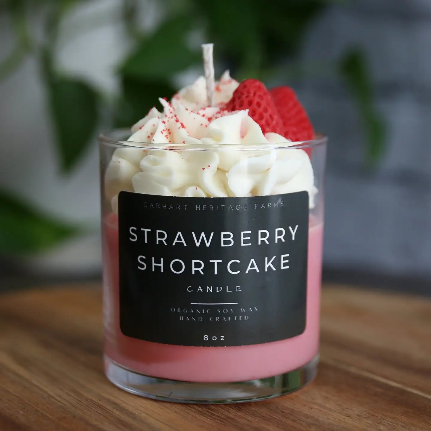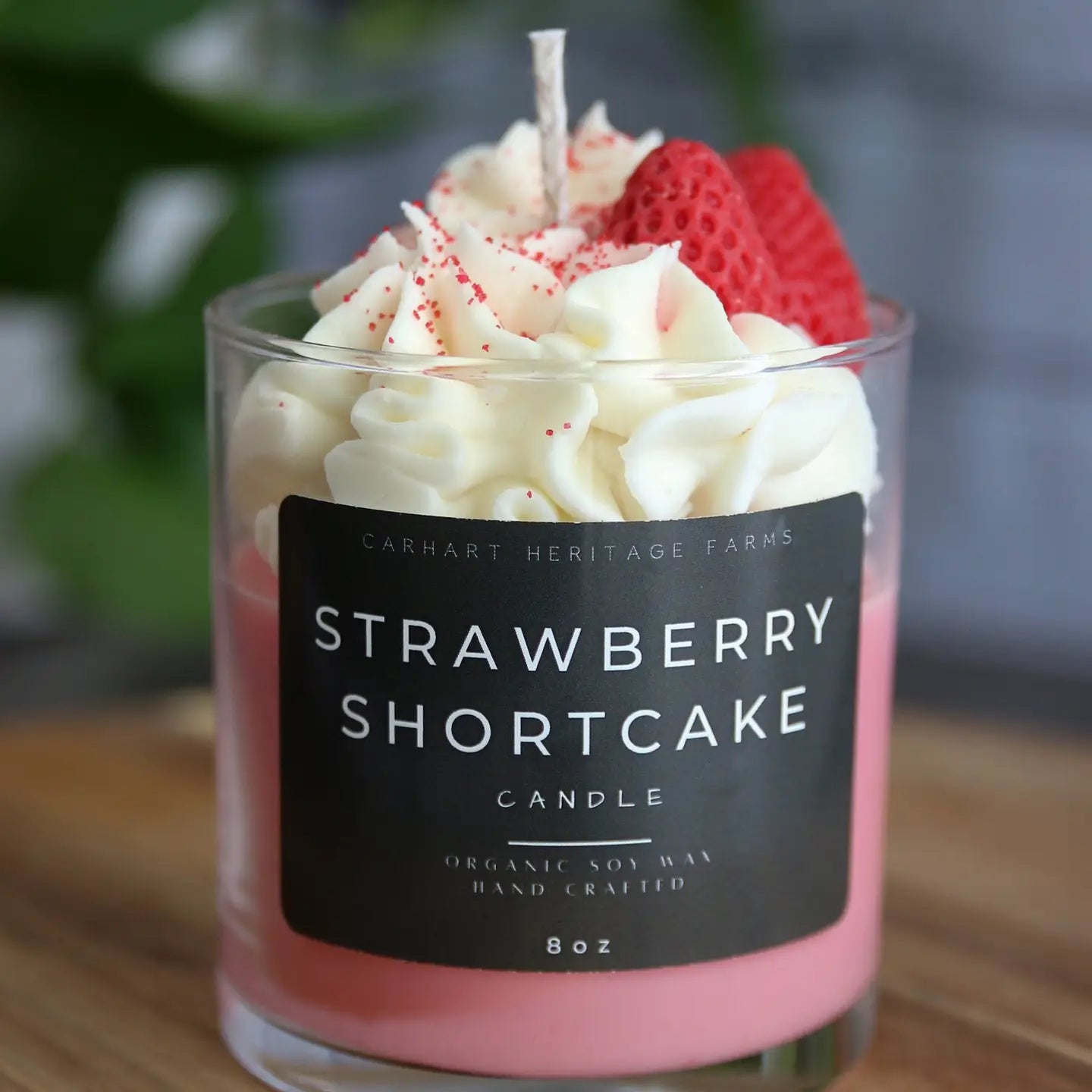 Experience the decadent scent of your favorite strawberry shortcake dessert with creamy whipped cream. This expertly crafted soy wax candle perfectly captures the essence of the beloved dessert. When lit, the Strawberry Shortcake Candle will fill your room with its inviting, fruity aroma - without the guilt of added calories.